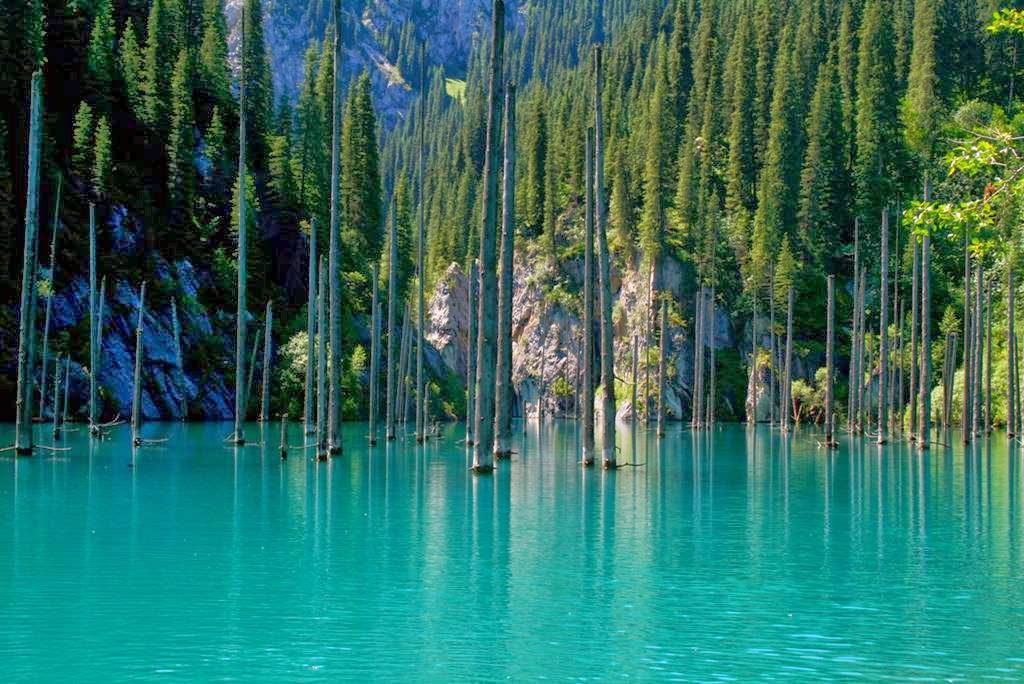 El Lago Kaindy (en kazajo, Қайыңды көлі, Qayıñdı köli) es un lago de 400 metros de largo en Kazajistán con una profundidad máxima de 30 m en alguna...s áreas. Está ubicado a 129 kilómetros dirección este-sudeste de la ciudad Almatý y a 2.000 metros sobre el nivel del mar.